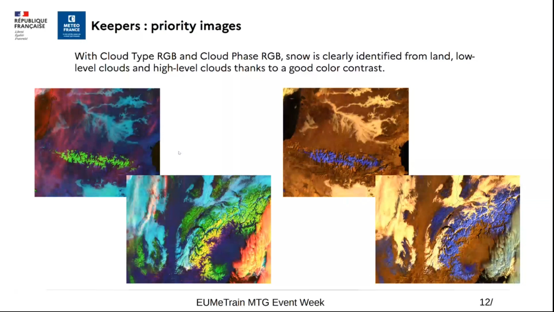 Roxane Desire shows the best RGBs for detection of typical winter weather phenomena: snow, ice and supercooled water clouds.